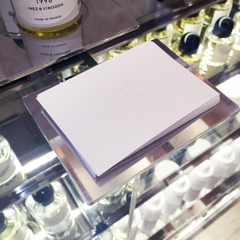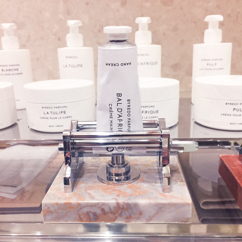 And then there's the perfume (of course). They're all here, along with the bath oils, body lotions, and metal-tubed hand creams in their own metal contraptions [photo 5] to ensure optimal product usage. But the store isn't overly scented, funnily enough. The candles are kept in glass homes to maintain both their integrity and your ability to continually smell everything on its own to your heart's content. Nothing about the shop is cloying or overwhelming. It's all simply there for you, so you can experience it as you please.