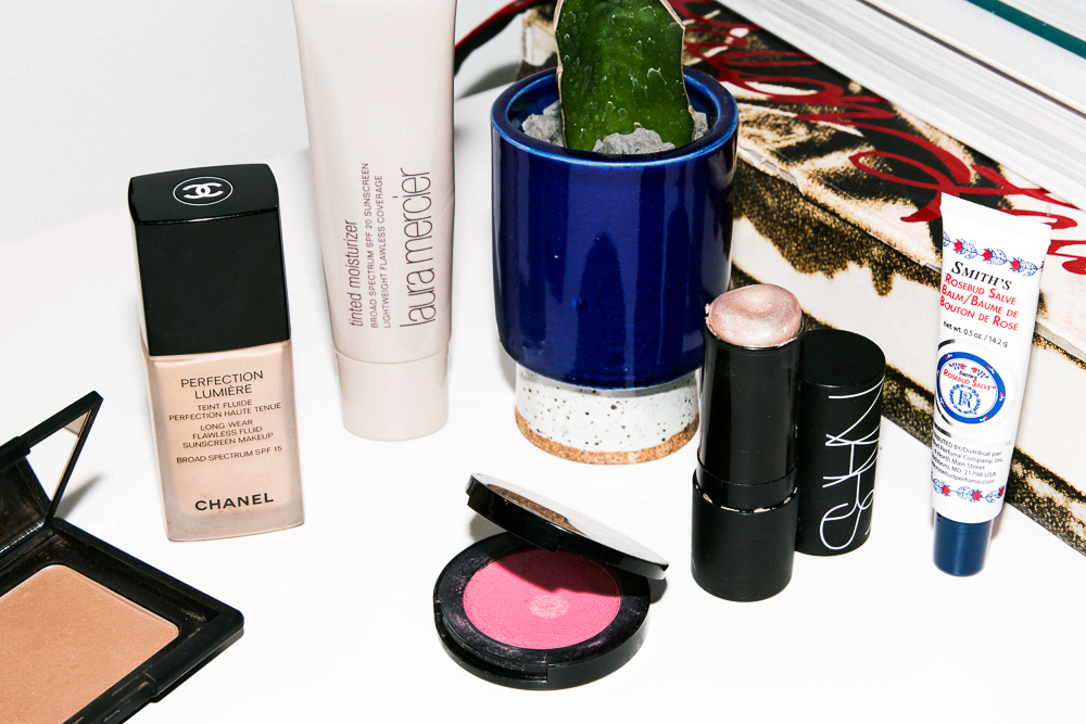Somedays I won’t even do all of that‚ just some bronzer and maybe a little contour with Nars' Bronzing Powder in Laguna. Pat McGrath taught me that. I do it as a very light contour and a little cream blush, keeping with the dewiness. The Bobbi Brown Blush in Pale Pink is perfect. I do that one with this Marc Jacobs' The Shape Blush and Contour Brush that's amazing. For my lashes, I use the Sephora Eyelash Curler, and then, just a swipe of mascara, which I like to layer. I like a full one with a big brush, and then I also like to go in and separate them. Maybelline Great Lash is just a standby. Benefit's They’re Real! and Lancôme's Défincils High Definition Mascara are my favorites. Chanel also makes a great one with a really small brush which is good for separating underneath. And then, the eyebrow situation is always vital, too. Sometimes it's just about shading them in with Benefit's Instant Brow Pencil, but that’s only if I want to be really dramatic. Sometimes I just brush them in place and gel them down.