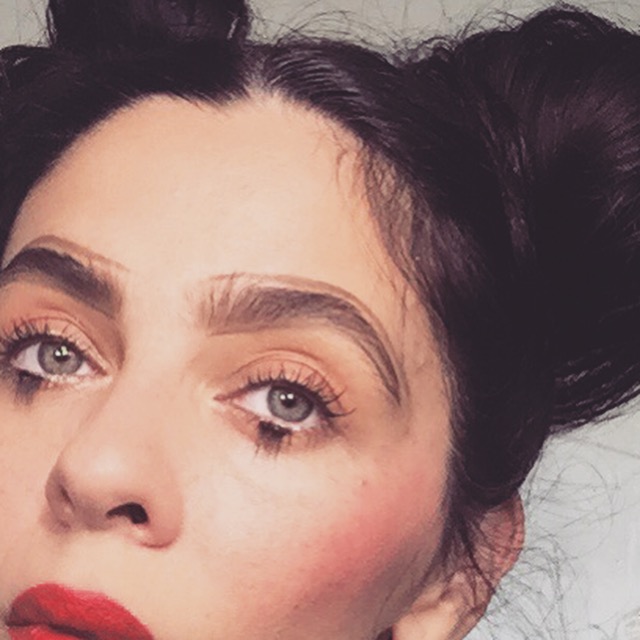 To get literal-looking doll eyes, start with a soft and delicate rose shadow in your crease, then use the same eye shadow brush and layer over a little bit of a warm peach color. This will look like a soft sunset dancing on your lids. Be sure to ring these colors underneath your lash line as well. Lastly, take a pearly/slivery eyeshadow and stamp a V to trace your tear ducts. Connect this inner-corner highlight into your waterline using the same powder with a finer brush. Apply a coat of mascara to the top and bottom lashes, and proceed with falsies.