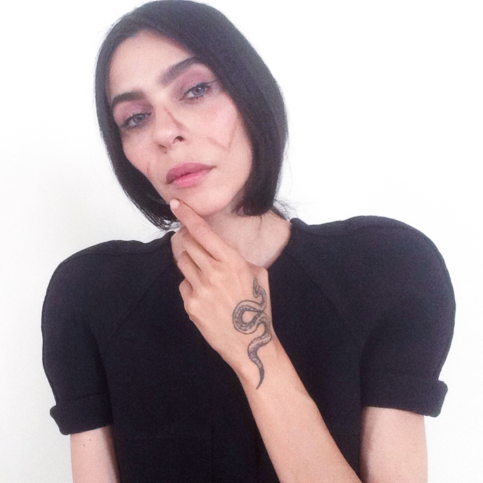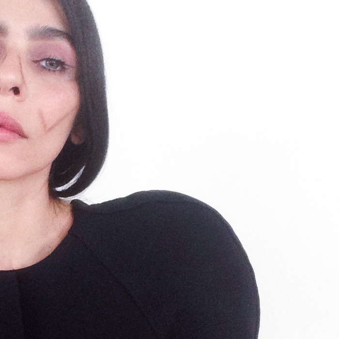 For instant cheekbones, look into the mirror and pose like you're about to take a selfie (you know that look you give) and bite in your inner cheeks. I start with a small, stiff, yet soft eyeshadow brush. Use this indentation as a guide to trace product through the hollows of your cheeks. Follow the flow of your jawline and temple—all of our lines will be different. Study your face to know where exactly you would like a little more definition. I like to make a check mark on each cheek—I don't know why. Anyway! Take a Q-tip and erase away the line you created, leaving a whisper of a line. Brow powder is resilient and has great staying power, so go ahead and give it a good rub down. Blend the lines until there's just a faint shadow left. I finish the look with a thin veil of loose powder on my face. It's that easy.