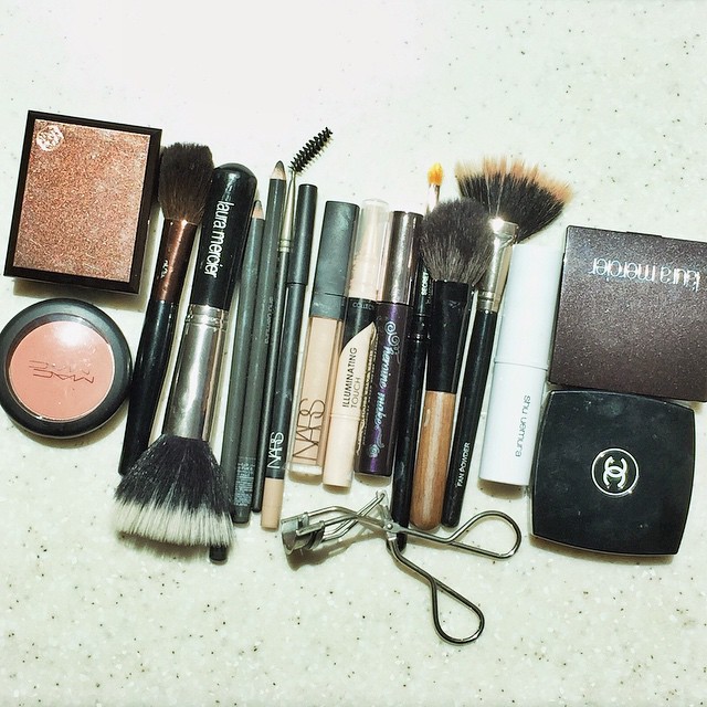 It's interesting because, in terms of makeup, I think beauty has become more of a fashion accessory. A red lip or a colorful manicure is now considered part of an outfit. Fashion and beauty are really the same, we use them to decorate ourselves and send a message about who we are to the rest of the world. For makeup, I like to put in minimal effort for maximum impact. For everyday, I like to use the Collection 2000 Illuminating Touch Concealer in Natural. It’s has a bit of salmon-pink tone, so it helps counteract the darkness under my eyes instead of just masking over it. For blemishes, I use Laura Mercier's Secret Camouflage mixed with Shu Uemura's Nobara Cream Cover Stick Foundation to get the perfect color and texture. The Secret Camouflage is not yellow enough and little too dry and the Shu Uemura stick is yellow enough but too creamy. Together, they are perfect. I set my skin with Chanel's Universal Powder, either pressed or loose—depending on what I have on hand. I fill in my brows with Shu Uemura Hard Formula H9 Brow Pencil in 05 Stone Gray because I have black hair. I also use the Shu Uemura Eyelash Curler every day—I’m a little addicted to the feeling of curling my lashes. My mascara is Heroine Make Volume and Curl. Japanese mascaras are the best at holding a curl and being waterproof. Then, I would just do the Shiseido Bronzer in 01 Light with a fan brush to get some color in my face. MAC's Powder Blush in Peaches is also pretty good. In general though, really like buying Japanese makeup because they understand the struggle of having very yellow undertones and living in a super humid climate.