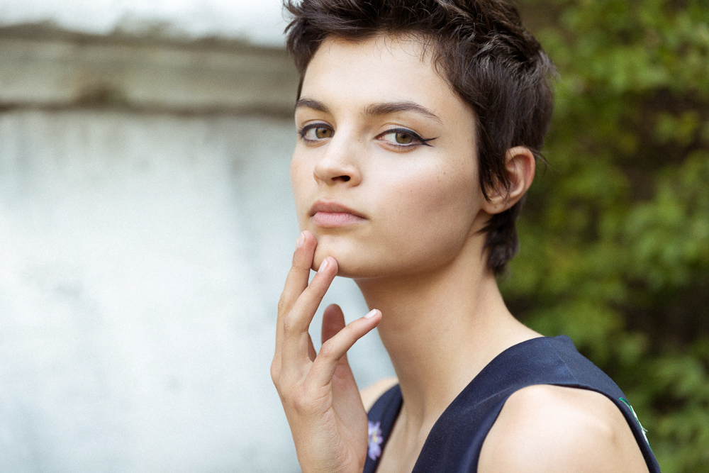 Stella’s shows have never been about a super bold beauty look—it’s more about the girls looking like themselves. So after a full course of Sunday Riley Skincare (Ceramic Slip, followed by Good Genes, followed by Juno, topped off with a little Effortless Breathable Tinted Primer), Gucci Westman finished off the models with a few strategically placed freckles and individually suited black eyeliner. Each was a version of a cat eye, though mainly very toned down—a flick more than anything else. Isabella Emmack’s was pretty cool—a double cross look to go along with her almost-too-perfect pixie cut. It all wore really well, too. Makeup was done by 4pm and still going very strong when the presentation ended at 8pm.