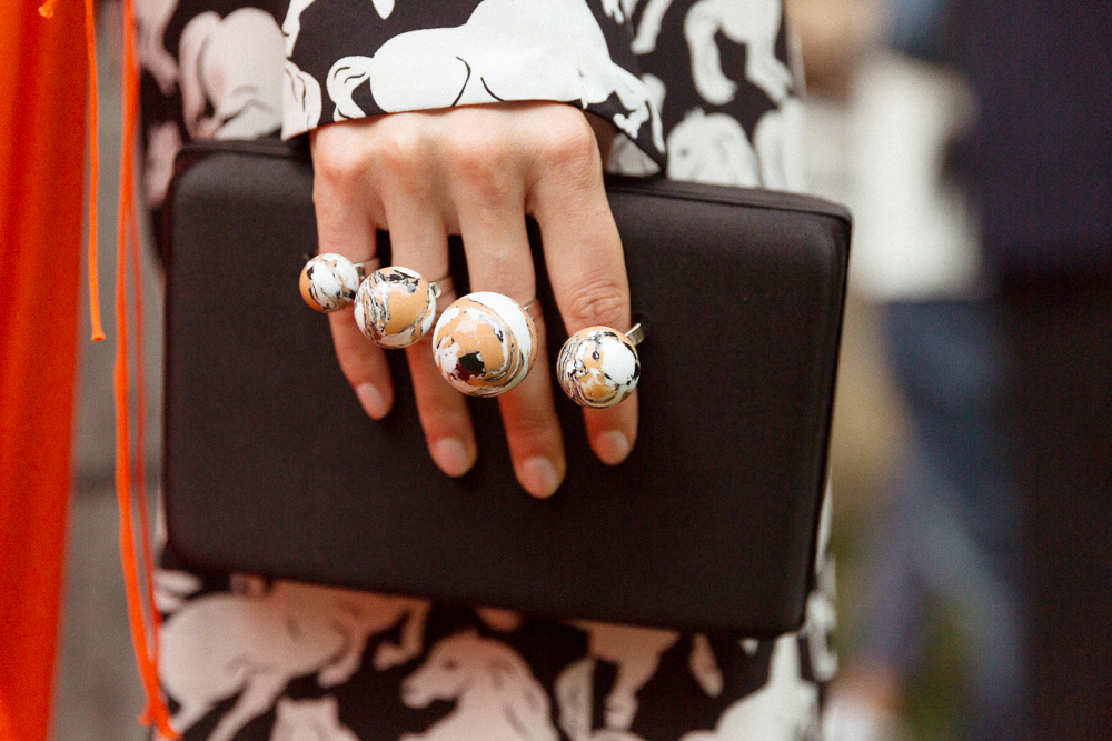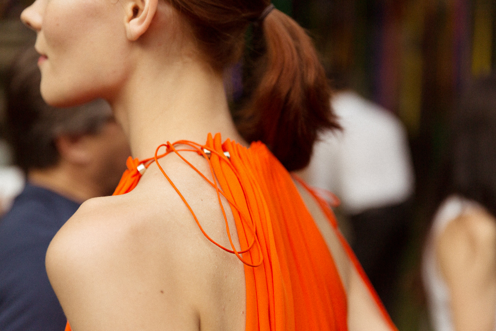 The last piece of the puzzle was the nails, done by Madeline Poole for Sally Hansen. They were neutral but pearlescent—sort of like almonds but without having that health food vibe to them (the color used was Sally Hansen's Complete Salon Manicure in Almost Almond, fittingly). Pretty enough to play off of the bright collection, but not so attention-grabbing that they’re distracting. Nails really are the unsung hero of fashion collection beauty. Maybe you don’t notice them when they’re all clean and polished and perfect, but you’d most certainly notice some chipping polish if it wasn’t corrected. It takes a little taste to get it right.
