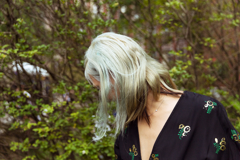 The hair was described with a name that’s probably going to trend very soon: the Plump Ponytail. Achieved with Aveda Thickening Tonic and some selective scrunching to get away from that “I’m uptight” look that ponies often have.