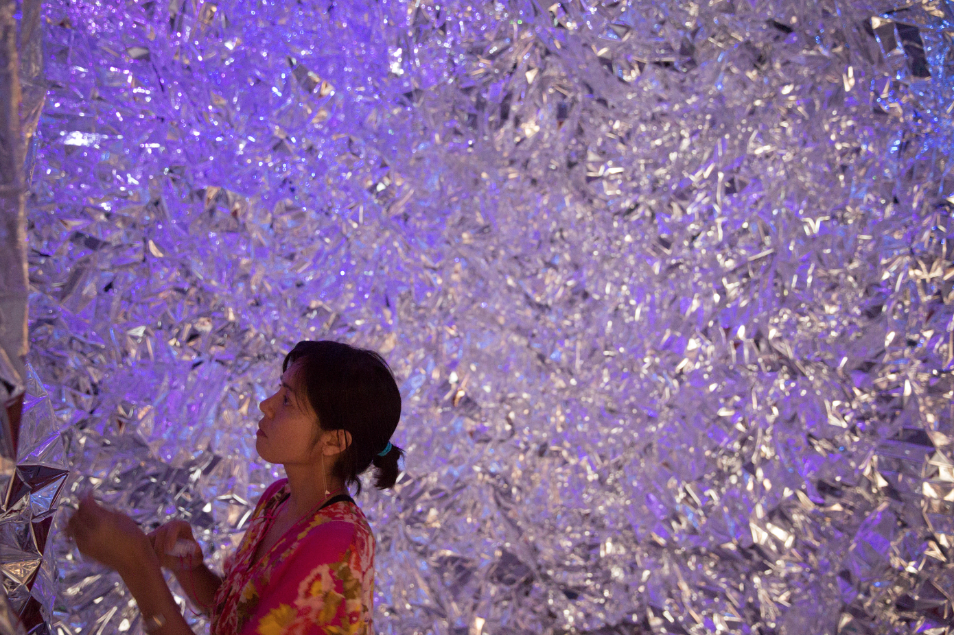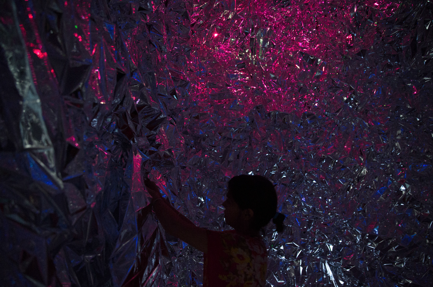 If you've had the chance to visit the Glossier Summer Fridays Showroom (if not, it's still open every Friday for the rest of the summer!), you've seen the immersive art installation that's taken over what used to be our conference room. It's called The Escape Room, and it's a multi-sensory experience, combining light, sound, smell, and feel into something that can only be described as complete Zen. The walls are covered in textured, silver Mylar, the floor is a mattress...we love having it. And we'd like to introduce you to the artist behind it, Grace Villamil. In her own words:
