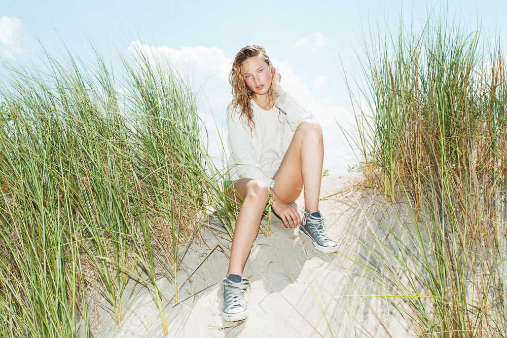The inspiration for the shoot came from a familiar place—Steven Meisel. More specifically, the shoots he did at a New York beach in the early 2000s with girls like Angela Lindvall and Maggie Rizer— the ones Loewe picked up and republished. Blush, like these images—doesn't have to be the finished, perfect, prissy, girly thing. It can be cool and weird and different. Instead of a grand California landscape with clean sand, big cliffs, and crashing waves, it can be a beach 40 minutes outside of Manhattan looking across to Coney Island in the midst of some iffy weather. With the right lens, though, it's beautiful.