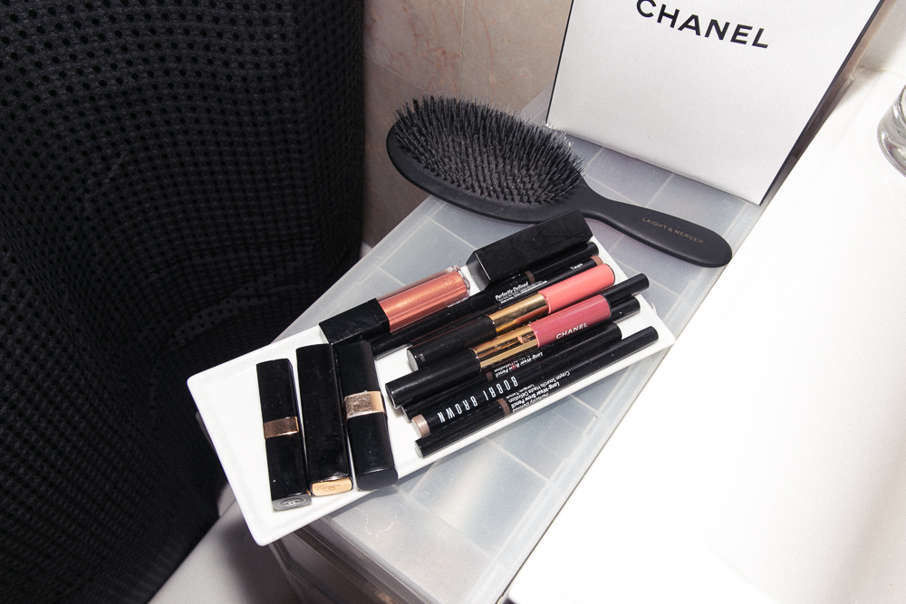 My hair is always the same. It’s wavy, so I brush it with a round brush. I’m a brush fanatic. I hoard brushes. I love getting my hair brushed. I will ask my friends to brush my hair for me. All my ex-boyfriends would have to brush my hair. My favorite are Laight & Mercer. They’re really fancy, and there’s one for when you have wet hair and one for when you have dry hair. You shouldn’t brush your hair when it’s wet with a brush that’s meant for dry hair because it’ll rip it out. I’m really, really into the Laight & Mercer brushes.