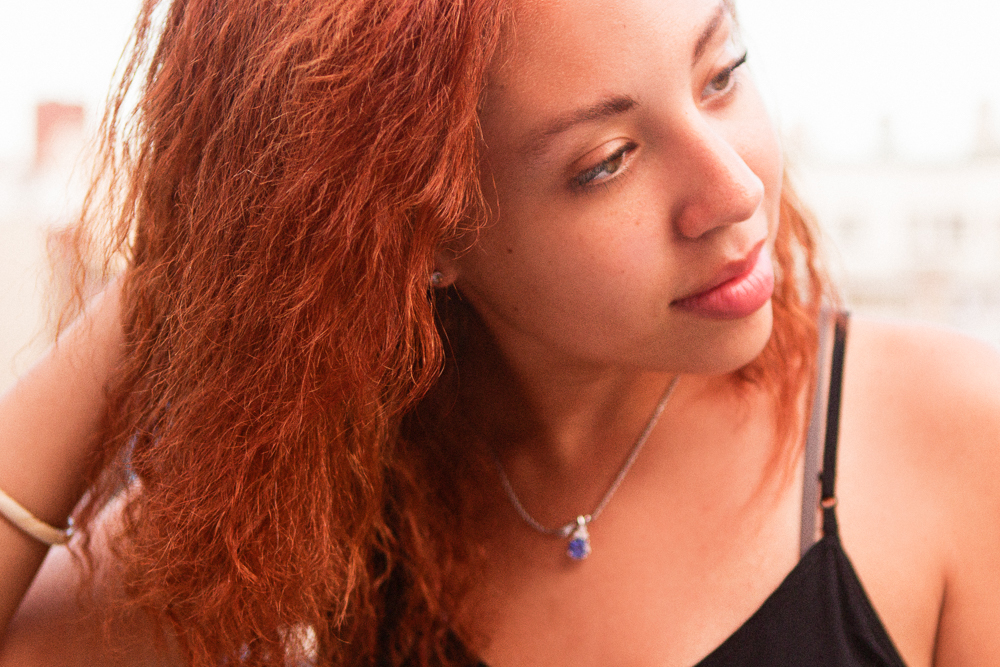 I think I stand out. My friends always tell me that whenever they try to tell someone about me, they’re like, 'You know, the one with the red hair.' It’s funny when I see other black girls with red hair because it’s always like 'Hey! We’re the same!' I tried to use this color-preserving treatment once, but I was like, I don’t know why I’m using this. It's not for natural hair so there wasn't much purpose. It’s interesting because I used to have a relaxer in my hair and I’ve started to grow it out since January. Each part of my hair is a different texture and going through a different level of transition. It's stressful! Right now, I’ve been trying all of these different things but I always come back to this Mizani Rose H2O Conditioning Hairdress. I use it at night when I braid my hair to keep the curl. And then Moroccanoil goes in daily—otherwise it gets really dry.”