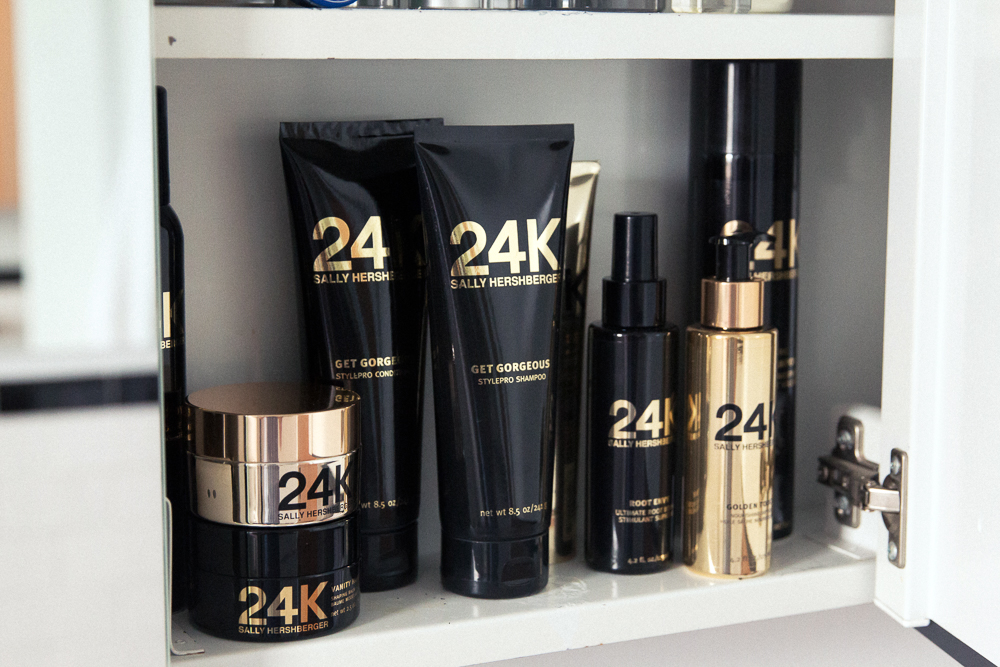So my line, 24K, is me. It’s expensive, it’s luxe, it’s everything. It’s the best of the best. It’s hairdresser-driven and we know hair. There isn’t a woman that gets out of my seat that doesn’t say ‘Wow, I look like 10 years younger.’ I’m not messing around. I’m very energized and charged up about it because it’s a big deal to be able to own your own company. I feel like a kid again, you know?