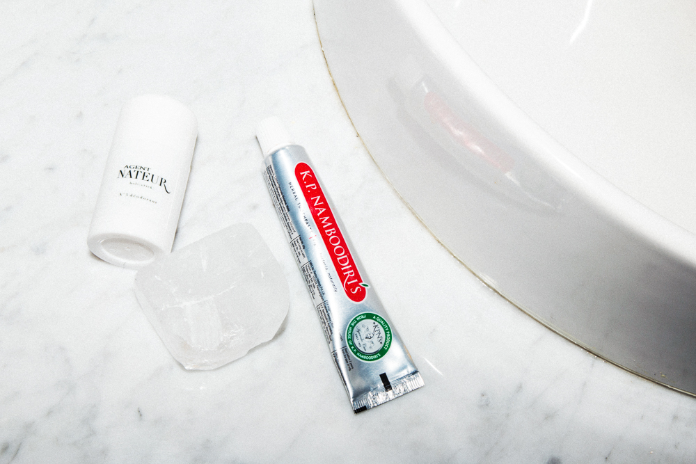 I use Crystal Deodorant. To me, it’s like, if you believe it works, it will work. I also use Agent Nateur, an organic deodorant. I combine them. I think that when you go out, no matter your outfit, even if you don’t have any makeup on, you always have to smell good. The perfume I use is called Black Saffron by Byredo. It’s quite dark and it gets better after a few minutes as it opens.