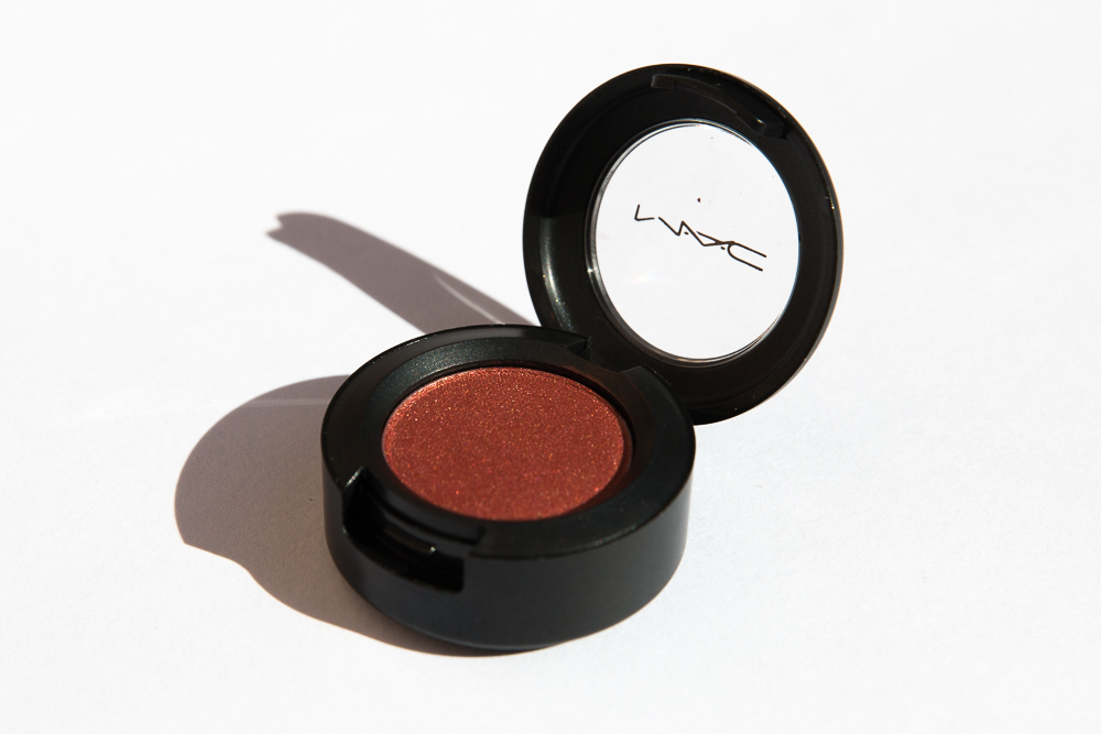 Then there's a blended-out orange from Rodarte—basically the ideal self-tanner color if you could use self-tanner on your eyelids. Use the Nars Eye Shadow Single in Persia (another that's deceiving in the pan and then goes on rusty gold). Refreshingly matte, it looks good on the lid, into the crease, and blended up until it fades. Sort of angelic, but really cool at the same time.