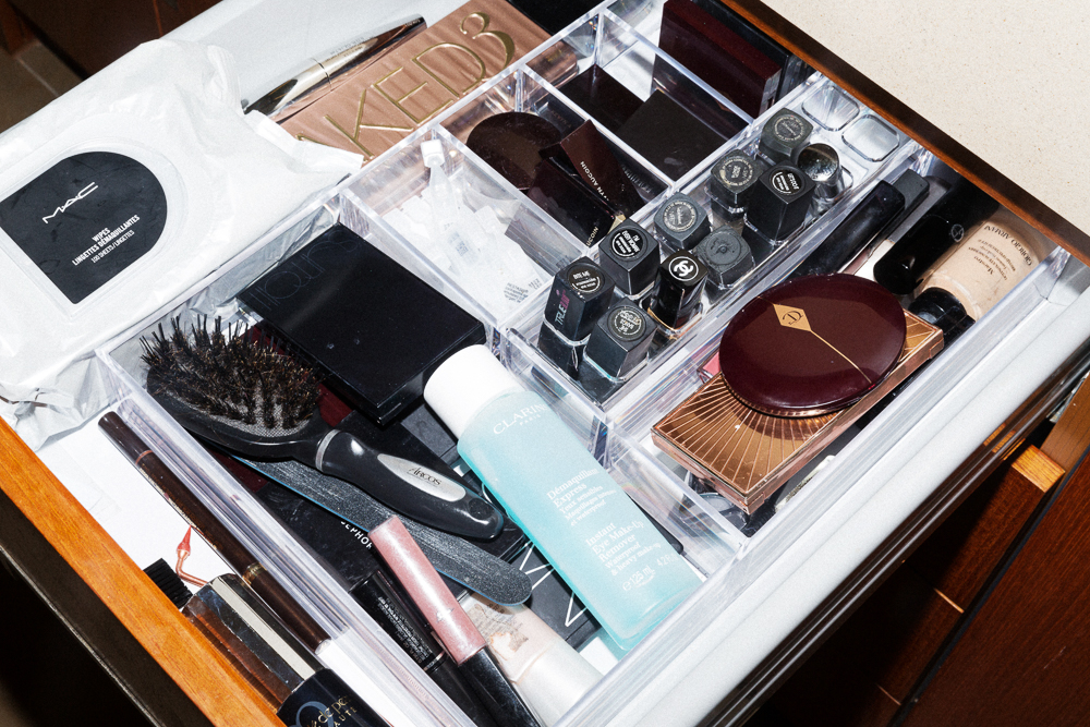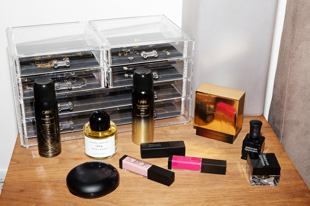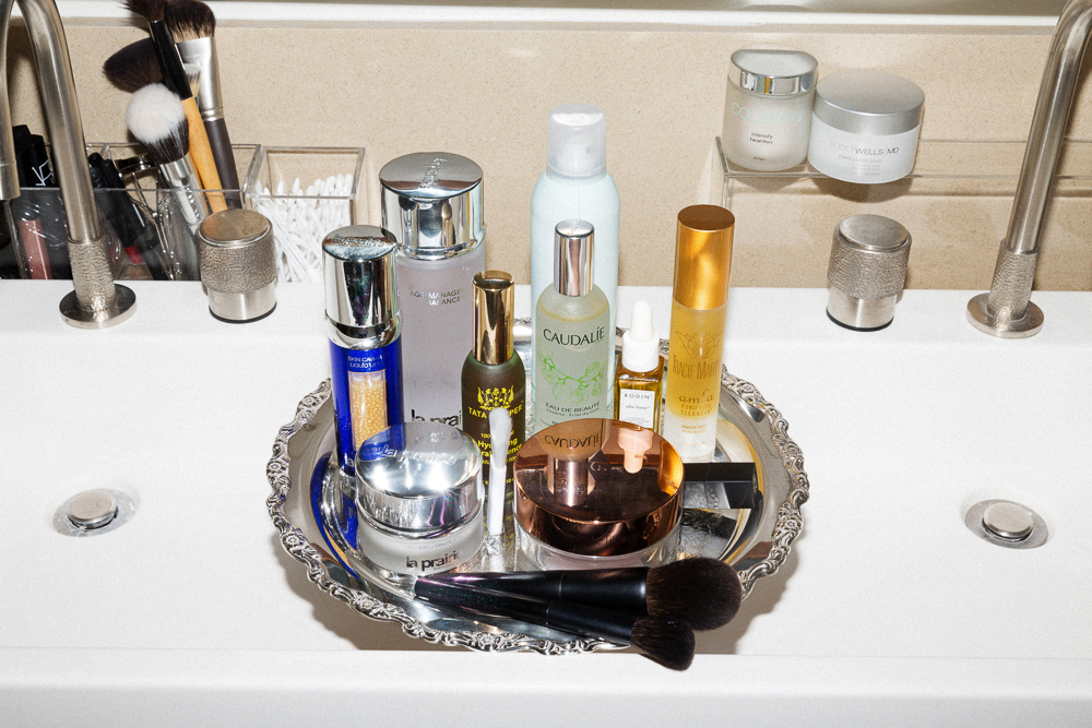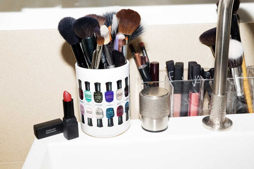 I use my Clarisonic Brush every day. I wear Clé de Peau Sheer Fluid Veil. I like a smoky eye and a nude or fuchsia lip. For eyes, I use Tarte EmphasEYES High-Definition Eye Pencil in Black. It’s a really good black that goes on easily and doesn’t bleed. But sometimes if I don’t have a lot of time I’ll just do an eyelash. I love Troy Surratt’s Pointilliste Mascara. I love Diorshow Mascara. I also like good old L’Oréal Voluminous. For my brows, there is Tom Ford Brow Sculptor. That’s fantastic. For lips, I use NARS lipsticks. I’m a junkie. I love to try new things. I love experimenting. I also use my own Lipstick & Nail Duet called Sexyback.