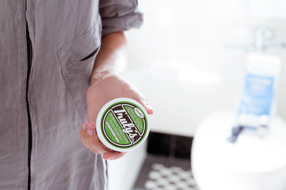 The other thing I love is my deodorant. I’ve been through Secret, Clinical Strength, you know, all of these things… I don’t have a big problem, I basically just have one simple need which is I don’t want to smell. I don’t even mind sweating that much because at this point I’ve given up on silk blouses and like things that are too delicate to live in. So my main concern is just warding off smell. The best one is called Truly’s All Natural Long Lasting Cream Deodorant. It’s all organic, and it really is all natural. The only ingredients in this jar are organic coconut oil, organic powered sugar, baking soda, and beeswax. The thing that’s gross about this is you have to use your fingers—and who wants to like, touch their armpits _ever in my opinion? It’s not an area you want to massage. [Laughs] So that’s the only kind of gross part is that every morning it’s like, I need to scoop pea sized amount into my fingers and massage it in.