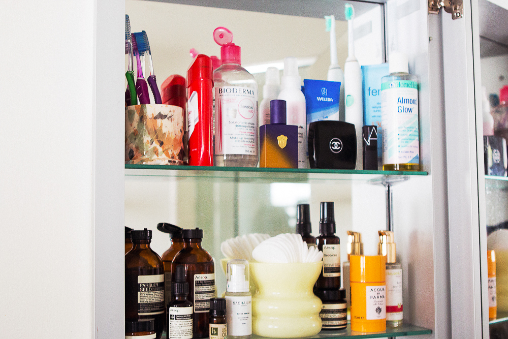If I’m really being lazy I will use Bioderma Crealine and then I’ll put on Aesop's Primrose Facial Hydrating Cream, which I love because I have rosacea. My skin is very sensitive and that doesn’t hurt it, so it’s good. But most days, I use the Aesop Parsley Seed Facial Cleansing Oil. You just mix it with a little bit of water and rub it into your face and it takes off all your makeup. Then you take a washcloth in warm water and wipe it off. It doesn’t really dry out your skin and it even takes mascara off too. Then, I splash some toner on and put on hydrating cream. If I have extra time I’ll do an eye cream, or if my skin’s really dry I use the Aesop Damascan Rose Facial Treatment.