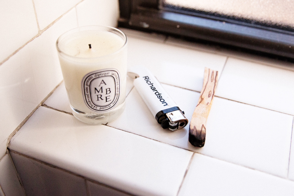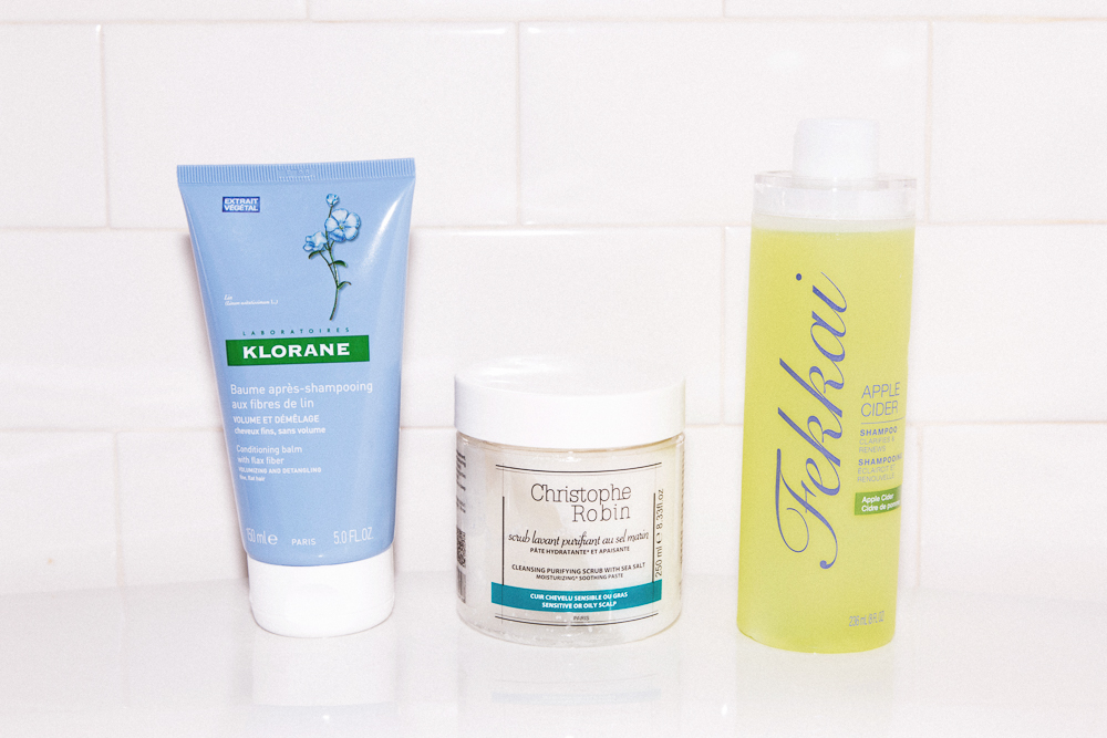 When I started doing shows, my hair was down to my hips—so it used to be a lot longer. It gets oily at the roots, plus I work out, so I wash it every day. People say that to fix that you have to not wash it every day, but I work and go to castings and if I don’t wash it people will say I have oily hair. So I can’t. But I just read about Emily's shampoo in her Top Shelf and I bought it— Christophe Robin Cleansing Purifying Scrub With Sea Salt. It's intense, so I don't use it every day, but I really like it. And then I also have a Fekkai Apple Cider Shampoo that I use on in-between days.