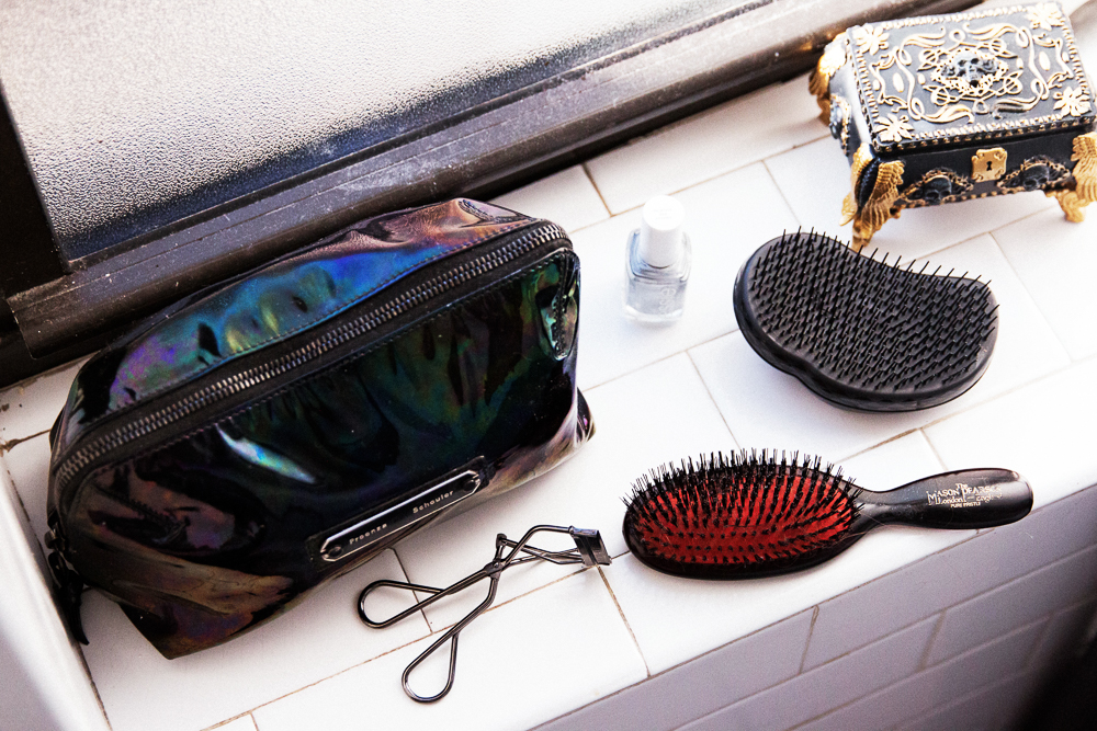 This summer I was visiting my boyfriend in London and his sister had a Tangle Teaser. I'd never used it before, but they're so good! And I also have like a little Mason Pearson one that I carry around with me, and if I feel like my hair’s getting flat, which it does, I just do that and then brush through it.