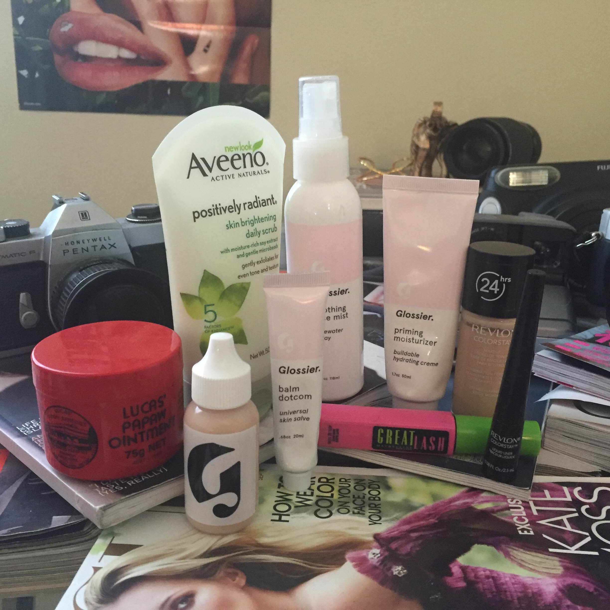 When I used to have acne, I would literally put an ice cube on my face and rub it in every night, like one or two, and it makes your pores really tight and gives you a kind of glow. My daily go-to now is this Yes To Carrots Moisturizer...I got it at Marshall’s for like, 10 bucks. I just got this one face wash by Aveeno and it’s a very, very, very light exfoliator, and I also use the Glossier Soothing Face Mist and Priming Moisturizer. Honest to God, my skin is like baby-soft every day now. My aunt, who lives in Australia, first showed me Lucas Pawpaw Ointment and she sent over a bunch because I loved it so much—I use it for everything.