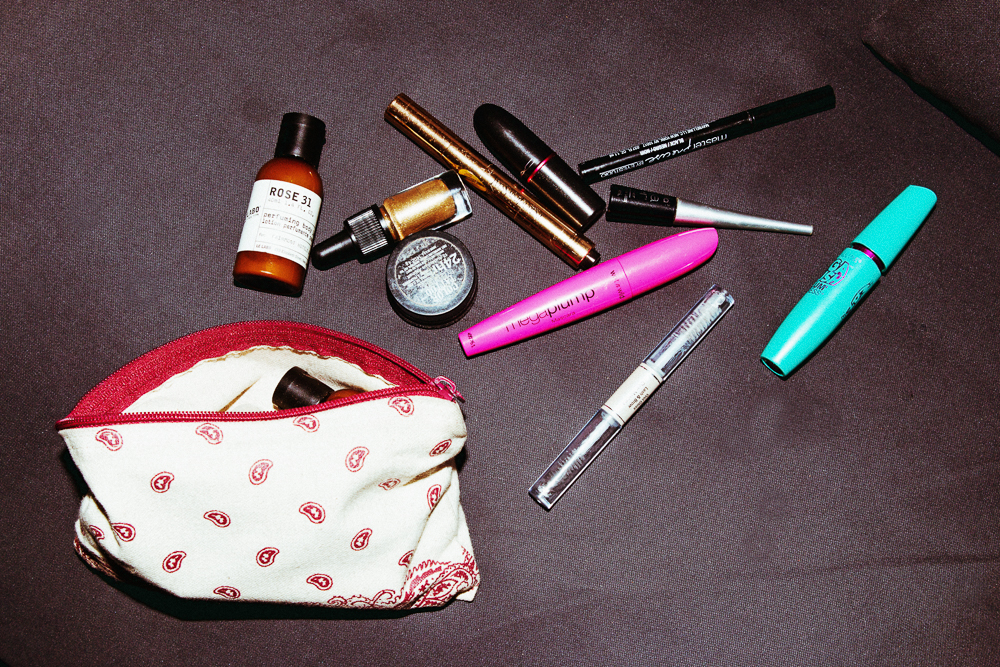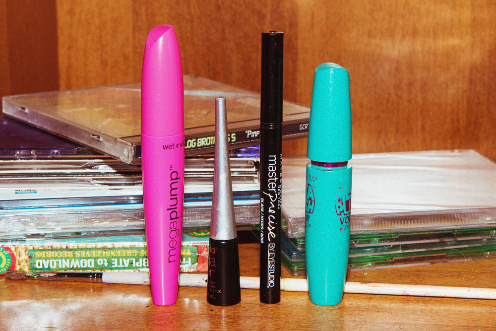 When I was like 13 or 14, I started doing a straight cat-eye. Once I discovered it I was like, this is it. I found it. I would be late to school doing it. I didn’t feel like myself unless I had it on. And then I had to kind of pull back and be like, what's my face look like under there? The guitarist in my band [Sunflower Bean] likes makeup, so he always asks me for a little eyeliner. I use Maybelline's Master Precise Ink Pen Eyeliner. It’s an old one. I should probably replace it, but it works. I try to put mascara on him, but he doesn’t like that. My mascara look is pretty messy—I'll use four different kinds of mascara on top and bottom. They’re all drugstore ones, like Great Lash or whatever. I have Wet n’ Wild Mega Plump in my bag right now that I got in Jersey at a show. I don’t have really fancy ones. It’s just hard to afford it.