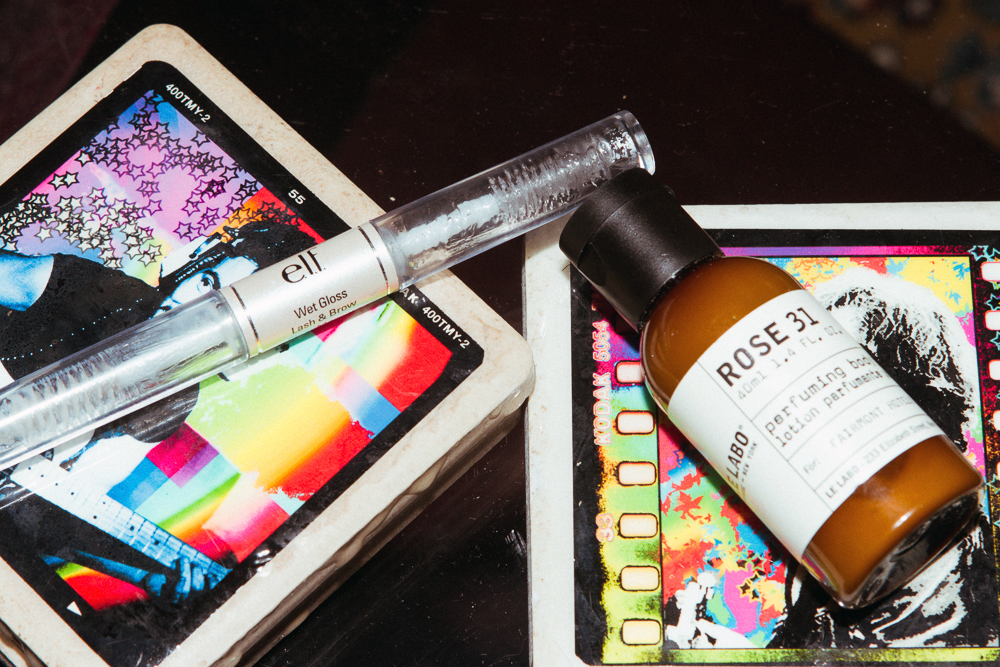 I also use an e.l.f. Brow Gel. I think it was probably a gift from one of my friends who was like, ‘You have crazy brows.’ But it’s fun. I brush them up. They’re very large, so they grow back in like a week. I used to do a lot more with them but now I’m kind of curious to see how big they can get. I really want to bleach them, but everyone says I shouldn’t.