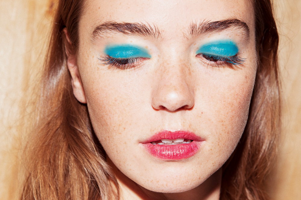 Maybe it's the dregs of Fashion Month almost past, but it feels like it's time for a more directional look. And The Face cover, in all its creative un-wearability, is ripe for that sort of thing. Take the concept of a blue eye and a red lip, but play around with the opacity and hue and you've got a fun activity to hold you for an evening or two. Here's how we did it IRL: