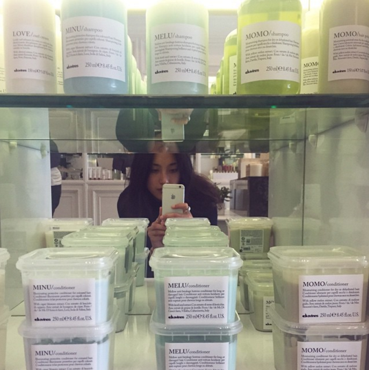 There are a few things that I always have in my shower. Davines Momo Shampoo and Conditioner—and I always double shampoo because I don't like washing my hair very often. Also L'Occitane Bar Soap because it just seems like something a chic, simple French grandma would have in her bathroom. And a homemade scrub, which I make with essential rose oil, eucalyptus oil, coconut oil, grape seed oil, and sea salt. I also love a Fekkai Hair Masque, which I put on the tips of my hair after conditioner to get rid of split ends. When I get out of the shower I sometimes use Byredo Bal D'Afrique Bath Oil, but only if I've had a bad day because it makes everything better.