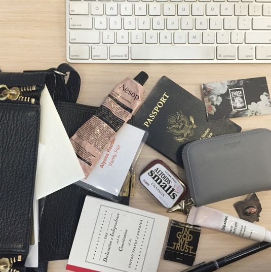 That said, I actually think college gave me a lot of great reference points for beautiful, smart women. I idolized Susan Sontag and Joan Didion—their big sweaters and stringy hair. They had this way of wearing makeup to make it look like they just came that way. Myself, I like to use Philosophy No Reason To Hide Tinted Moisturizer, Nars Illuminator in Orgasm, Clinique Chubby Stick Cheek Balm, and Glossier Brow Boy. Those things, along with my Anastasia Beverly Hills Precision Tweezers, are always in my makeup bag.