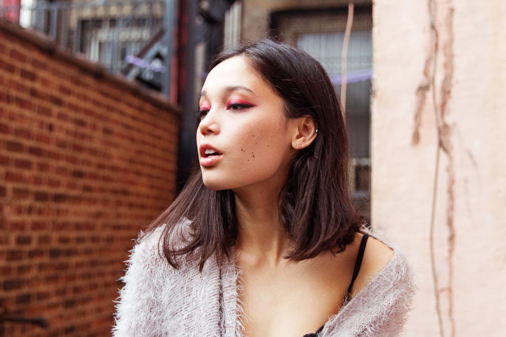 Makeup didn’t used to matter to me. As long as I had my eyeliner right, I left my face kind of blank. For coverage the Glossier Perfecting Skin Tint is the lightest, so that's really nice. Otherwise, I’ve always been a drugstore makeup girl...but I also like Benefit Magic Ink Liquid Liner. That stuff is awesome. And then I like Maybelline Lash Stiletto and then Stiletto Liner…it’s good because it's pretty reasonably priced and I use a lot of it, so it goes fast. I was recently shot for a red eye makeup story for Nylon and I was just really inspired by it. I thought it looked very regal. I tried some blushes on my lids—I tried Nars, that didn’t work too well either, but I went back and got an Estée Lauder Lipstick in a reddish pink. That with black or blue eyeliner is what I'm wearing these days.