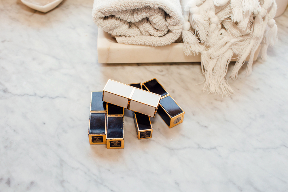 I use all essential oils from Whole Foods. My friend Sam, who’s a very chic girl from Paris, gave me this little Hermès perfume bottle, and I put my essential oils in there with my alkaline water to make my own blend. It’s a constant mix because they do different things. I love grapefruit, geranium, neroli. Rose, geranium and sandalwood is like my go-to, and I just mix it myself. I also have a bunch of these [solid perfumes] from Frazer Parfum. The Coffee and Orange Blossom is my favorite. Cristina Radu is a fancy facialist who I don’t go to anymore, but I used to get it in her shop. And I’m completely obsessed with candles. I have so many candles all over the house, all different brands. Although Martyn Bullard’s candles are one of my favorites, and I love to give those for Christmas gifts because everybody loves them—all his scents are amazing.”