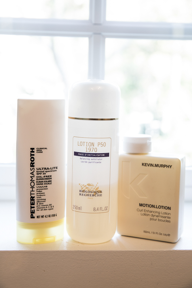 As far as face wash, every day I use Sanítas, which I was referred to by Francesca Paige, who’s an aesthetician. Then I use Biologique Recherche Lotion P50 morning and night—it’s life-changing. I just started using this RéVive Eye Cream that I really love...I was never really an eye cream believer before this. I just sort of used whatever free eye cream someone sent me. But this one I bought, and I really do think that it works. It’s very expensive, that’s the only downfall. I don’t have dark circles—my problem is more the thinness of the skin and crepe-iness under the eyes. So this is supposed to be a little bit of a filler, and I think it’s helped my fine lines as well.