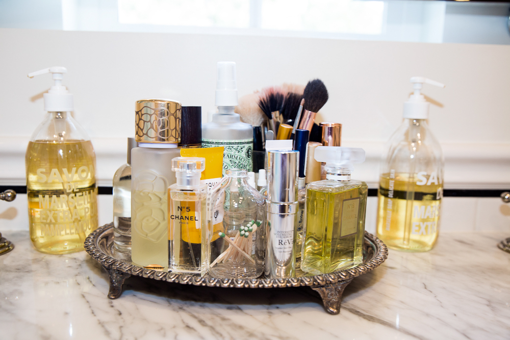 I’ve been wearing Quelques Fleurs Perfume since I was like, 14. If I want to feel a little more sophisticated, I’ll wear this Chanel No. 19. I’ve tried to wear different things, but I just always go back to the [Quelques Fleurs]. This Caudalie Divine Oil is really cool. During summer, even though I don’t tan, I would put this on and pretend I was golden and glowing. And then I always buy a new Ligne St. Barth lotion when I go there, but I wear that mostly in the summer. In the house, we like the Le Labo Santal candle, and sometimes Diptyque Baies—that’s pretty much it.