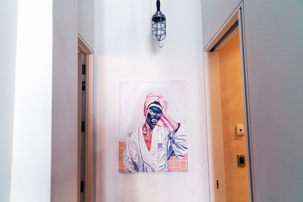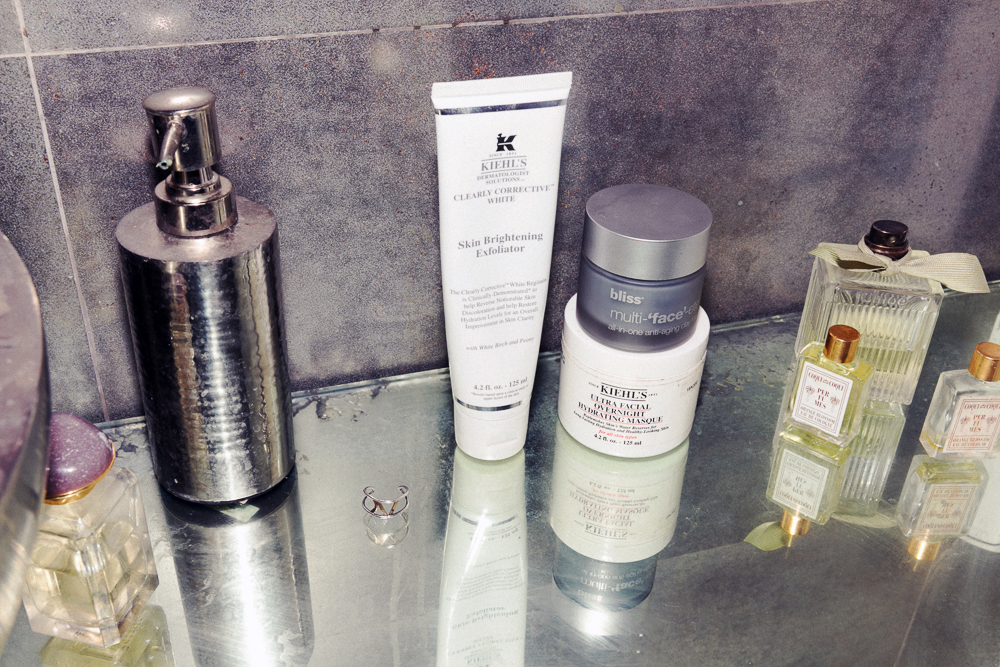 Now every time I use a mask, I think about how I can use them in my paintings. I'll have a girlfriend come over and we'll both put on masks and I'll take some pictures. Organic Pharmacy has a good mask. Then I also use a Bliss All-In-One Anti-Aging Clay Mask that makes my skin glow after I use it. It does sting a little bit—I don’t really know if you’re supposed to use anti-aging when you're young, but you never know when wrinkles are going to pop up. I also make a lot of expressions with my face so it's nice to know I’m taking care of it. If I want something lighter, I’ll use this Kiehl's Ultra Facial Overnight Hydrating Masque and leave it on when I sleep.