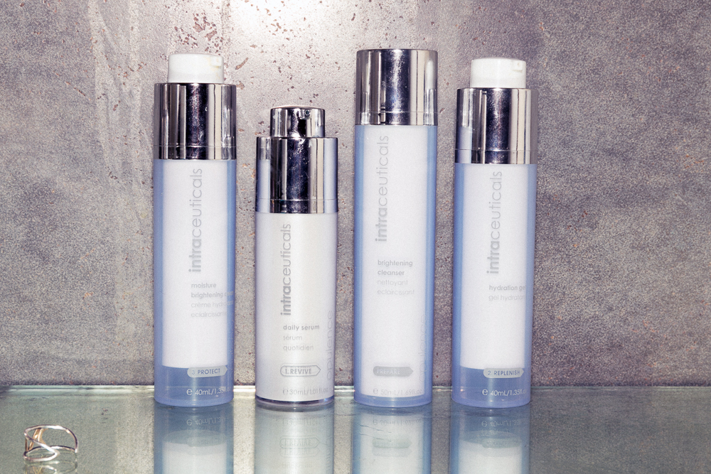 Recently I started using the Intraceuticals line after a makeup artist introduced me to the line. It's great because it's this whole process that makes for a fun ritual every day. My skin is really dry so I'll do the whole thing—the cleanser, the serum, the hydration gel, the moisturizer, morning and night. The air here is so polluted that I enjoy that clean feeling at the end of the day. Then I’ll use the Kiehl’s Clearly Corrective Skin Brightening Exfoliator to keep things unclogged. A lot of people say things about exfoliators, but I like this one twice or three times a week. Dermalogica has a good one too—the Daily Microfoliant.