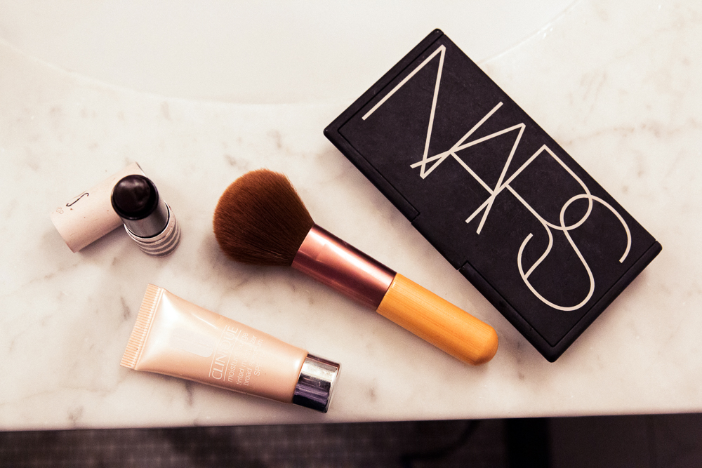 I always do a strong brow. I’m obsessed with Frida Kahlo, and I don’t know how to do that much other makeup. [Laughs] But also I had a mother who always told me, ‘Never let anyone touch your eyebrows.’ And, ‘You’re not allowed to have plastic surgery,’ so…Also, I always put on highlighter, because I know you can’t mess it up that much. Nars has an amazing highlighter. But my go-to, even for daytime, is a red lip—something like Sephora Cream Lip Stain in Always Red. I think it always is like the quickest, easiest, most glamorous thing you can do.