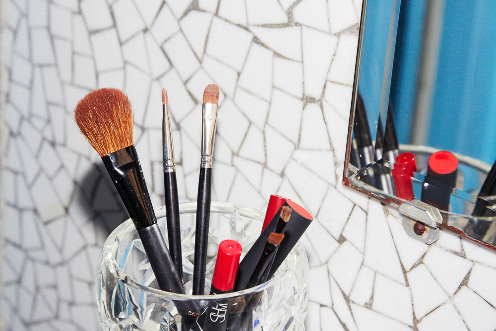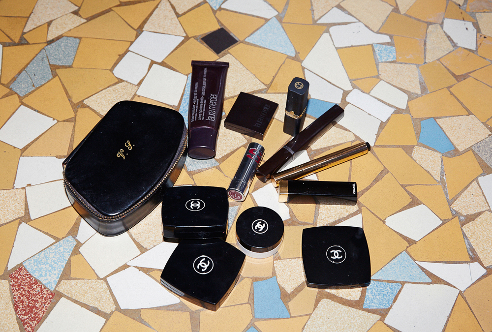 My tweezer is my enemy because I have very bushy eyebrows. My eyebrow brush has become very important to me—it’s Shu Uemura. Then I just use a pencil to fill in some of the holes. For my eyes, I use black eyeliner and black mascara—both from Laura Mercier. Sometimes I use a pencil on my lips, something neutral like Chanel in No. 34. But I also have Sisley in Sheer Burgundy. In the evening though, it’s Chanel Rouge Allure Velvet. And also Nars Velvet Matte Lip Pencil in Dragon Girl or Cruella. If I’m not wearing any color on my lips, I just use Homeoplasmine!