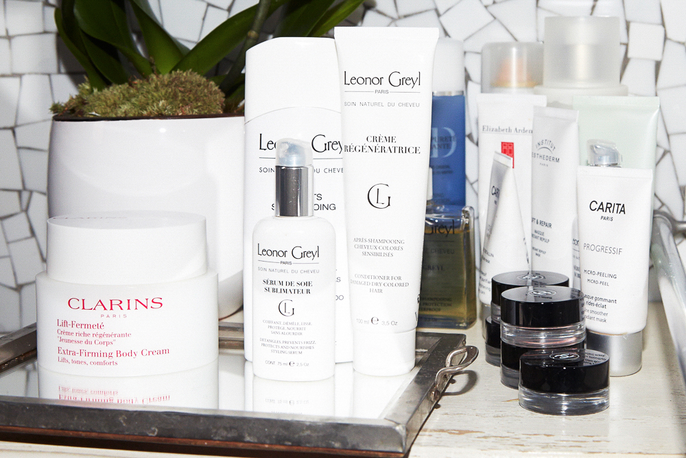 For my hair, I’ve been using Leonor Greyl forever. And I also go to their salon on Rue Tronchet. I use Huile de Leonor Greyl because I’ve got quite dry hair. After I shampoo, I like to leave it on for an hour. You don't even have to put that much in. Then I rinse it out and the Sérum de Soie Sublimateur.