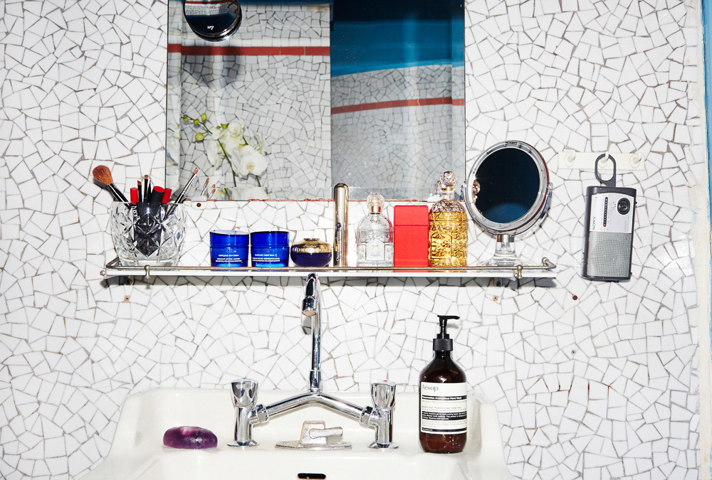 My husband, my five year old, and I live in Paris now—I’ve been here for 32 years now. In the morning, I use Christian Dior Purifying Toning Lotion with Crystal Iris Extract with a cotton pad on my face, just to get rid of the night. More recently I’ve started putting drops in my eyes to wake up. I’ve got sensitive eyes so that feels quite good. My biggest indulgence is my bath every morning with Laura Mercier Creme Brûlée Honey Bath. I need that time on my own to do nothing. When you’re a creative, I think you need an excuse to find time to have ideas. So without that moment, I unravel. And it’s so easy to be busy—there are days when you feel so interrupted, especially if my daughter is home from school and my husband is working from home too. But you can be creative in those moments, even when washing the dishes. For me, inspiration is a state of mind and a creative mood can be any time. Sometimes I design when I’m still in my pajamas. I’ve thought about not working from home, but it wouldn’t be the same. I actually really do enjoy it. When I get out of the tub, I use the Clarins Extra-Firming Body Cream and move on with my day.