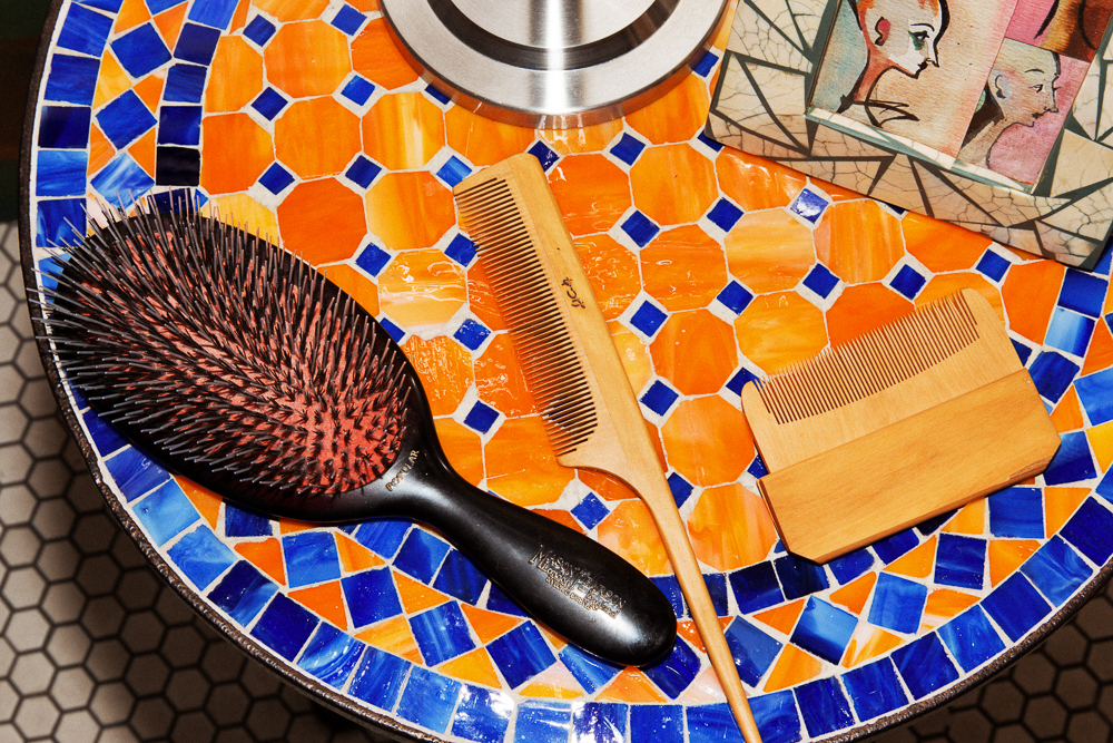 People experimented more with makeup back in the '80s. Now it's more about hair, I think. For me, because I'm constantly at work, I just need it out of my face. So usually it's pinned up. In order for me to have it loose, I need to work at it. One hundred brush strokes with a Mason Pearson! And I have these Japanese wooden combs in a couple of sizes to travel with. They keep all your oils in as you brush and don't give you any static electricity. When I use Garnier Fructis Sleek & Shine, my hair is silk. I don't know why—it just works. I don't have a ton of time go to shopping for new products, but I know I can send Ruben out to get that and he'll come back with the right thing.