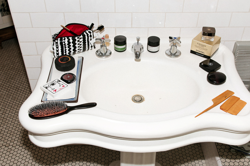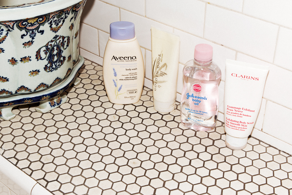 How I wash my face depends on how I feel. Some days I just wash it and some days I scrub. The weekend is the heavy duty, when I scrub my face, maybe I’ll do a bath and salts...On my face, I use Chanel Sublimage because it makes my face feel moisturized but not oily. Then there's the oil from the bath and with that, it's enough. Oh, and I drink a lot of water—that helps with everything.