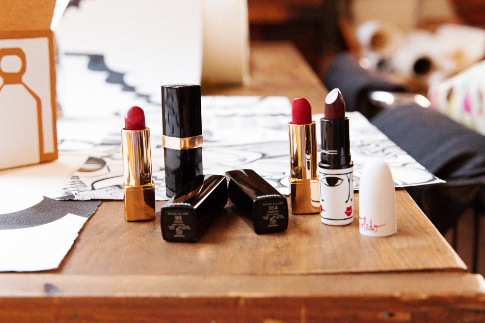 I don't leave the house without lipstick and earrings. I can put on a pair of glasses and go out, but I have to have the lips. I'll do different colors, but red just feels like an extension of me. Chanel Rouge Allure in Pirate is a good red that I'll apply differently depending on my mood. Like, very heavy on the inside but light on the outside...or I'll really paint my lips. The real fun is in the doing. I don't really care if someone likes it or not—it's about what I find attractive. And Ruben loves me no matter what. I could put on anything and he'd be happy. That's real love.
