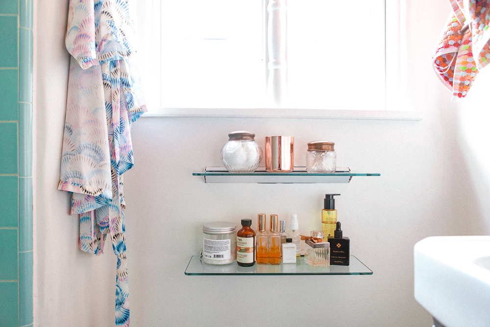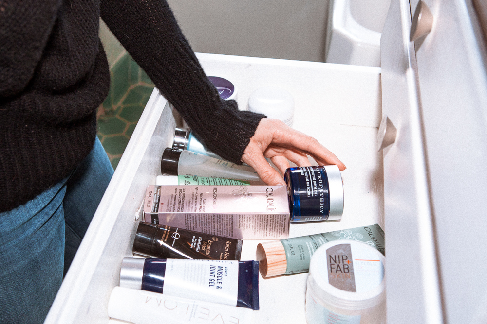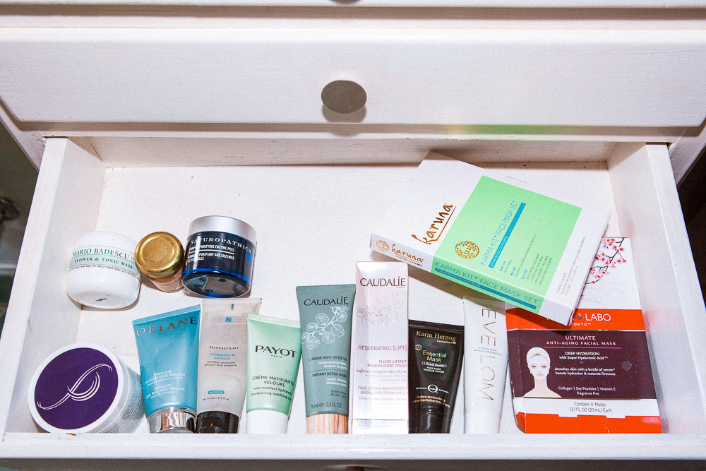 At home, I am obsessed with taking baths with salt and any kind of oil. I also have a steam room in my guest house and that’s my ideal relaxation thing—steaming and sweating and doing a mask. I love the Naturopathica Pumpkin Purifying Enzyme Peel and this mud mask that I got from the side of the road in Mexico. Or Mario Badescu’s serious Drying Mask that I use if my face is really freaking the fuck out. I’ll do a mask weekly, usually.