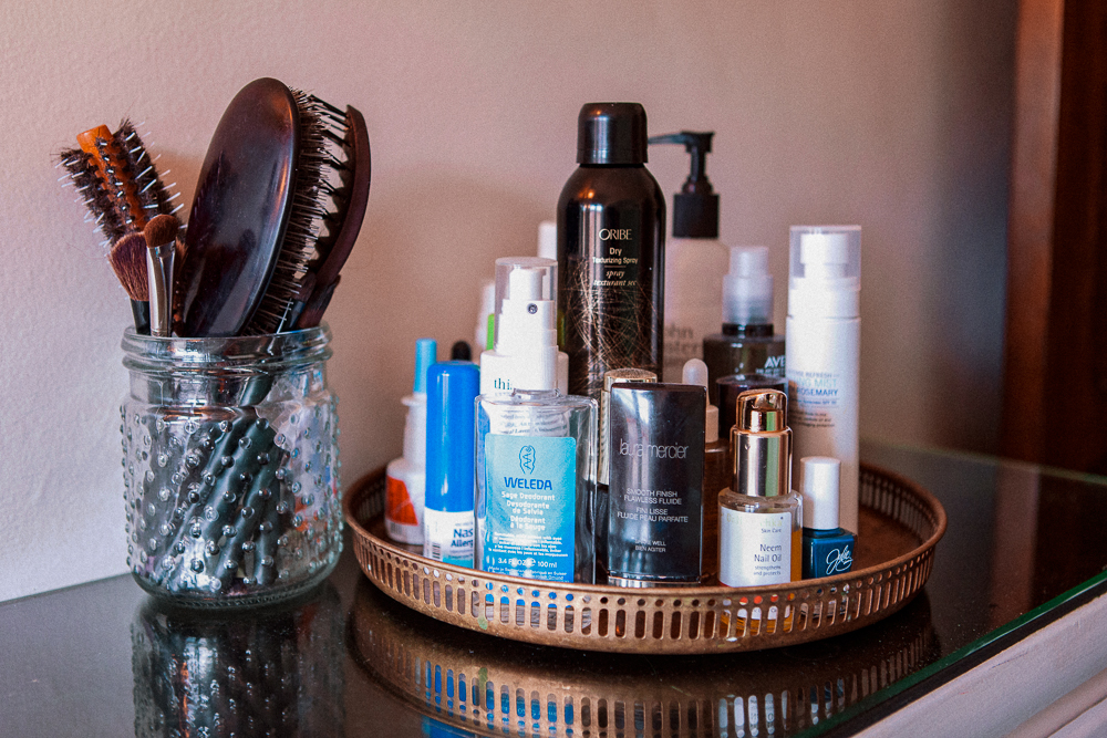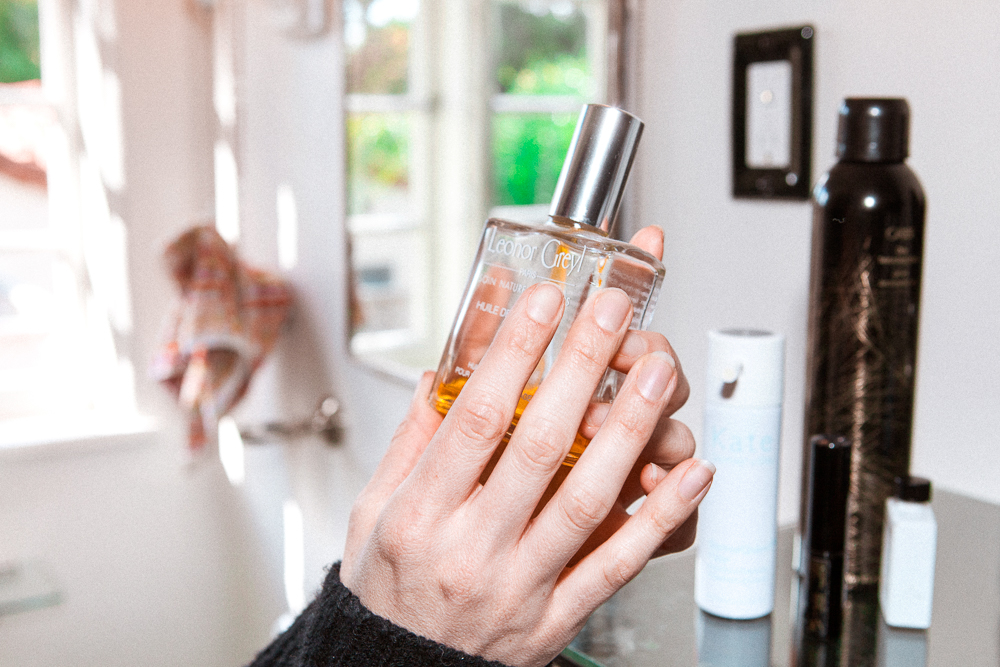 My hair gets a lot of heat because of work, so I have a ton of oils for it—even straight up coconut oil I’ll use. I like things that you can put everywhere and coconut oil you can eat, too. A lot of times when I take a shower and my hair is wet, I’ll just put oil in there and sleep in it and give my hair a break. Leonor Greyl also makes a really good Huile de Magnolia that I use.