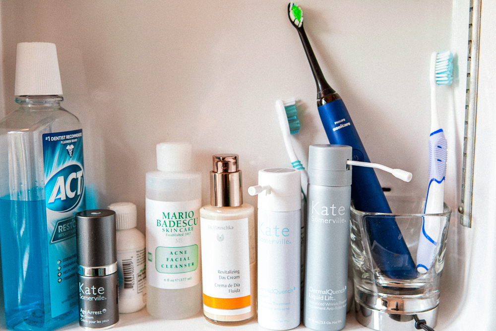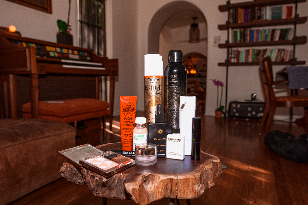 If I don’t have to do anything for work, I will do my little three-step routine. I’ll wash my face, do a little serum or toner, and then a lot of moisturizer. I’m really into the Kate Somerville DermalQuench [line]. They have an anti-acne one– DermalQuench Clear Anti-Acne Treatment and an anti-aging one– DermalQuench Liquid Lift Advanced Wrinkle Treatment. Those are kind of like serums. You pump them out and they fizz and you rub it all over your face. I’m into Mario Badescu’s line. I use all of his acne stuff if I’m having a bad skin day. I’m also really into oils–all purpose oils. The MarulaOil Rare Oil Treatment is awesome because you can put it in your hair and on your skin, so if I want to go completely oily, naked-y, and glowy, I’ll put that everywhere and it also smells really fucking good. My friend Peet Rivko is coming out with this oil that’s my favorite thing. It’s just a really simple, clean oil instead of a cream-based moisturizer. Then I always use Lucas’ Papaw on my lips and any weird skin irritation that I have all over my body.