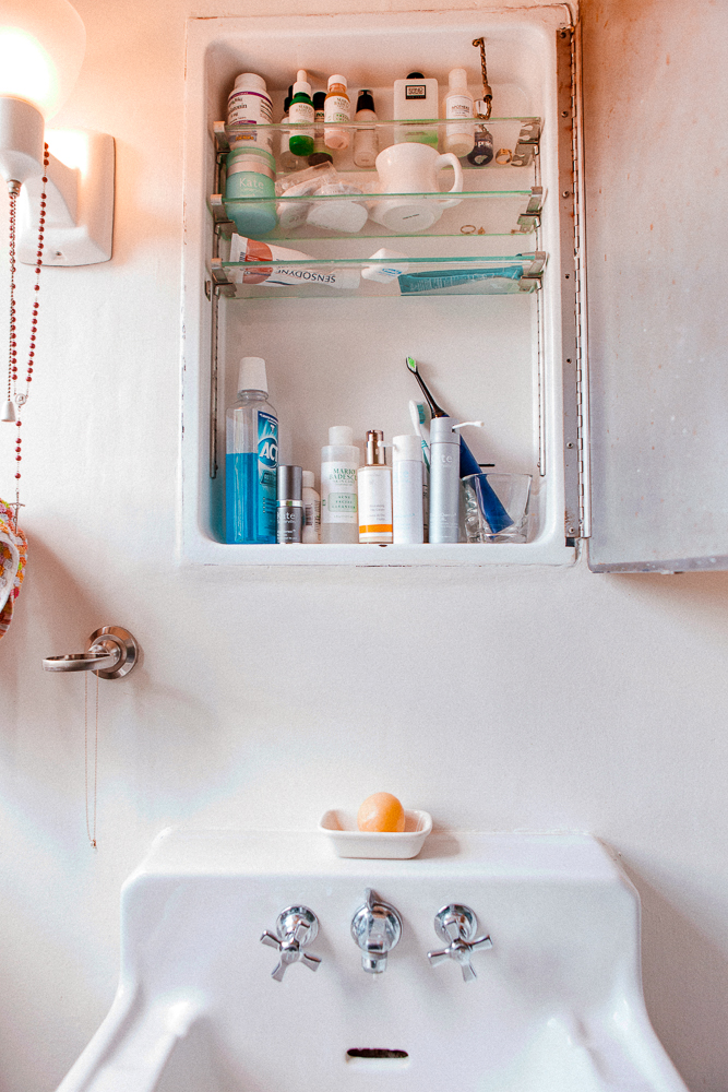 My skin is really annoying because it will go for long stretches of being really chill and then it will just not be chill. Growing up I had really bad skin, so I had trauma. I’m always switching my routine up because I feel like I have to be five steps ahead of my skin at all times—once I get used to something, it doesn’t work as well anymore. On a regular day, I wake up and I use that gold ball in my soap dish called Golda Sphere Soap. It’s this amazing Japanese massage thing made by this woman Keiko [Matsuo] who gives me facials. It’s so awesome and it’s like a ball of oils. It’s the one thing I actually like using. It makes my skin feel really, really clean.