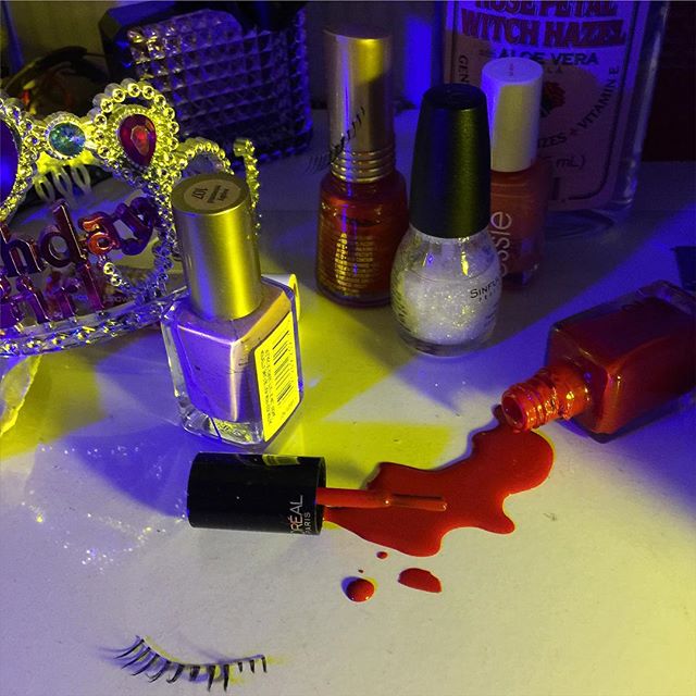 When I was little, I was made fun of for having bushy eyebrows and a gap between my teeth, but at the end of the day I realized that’s always going to be me. Now, I embrace my eyebrows especially. My freshman year of college, I watched a backstage interview with the lead makeup artist who did the first Alexander Wang show, in which she described how to achieve bushy '80s eyebrows...she used clear brow mascara, so that's what I used. Now, I use Boy Brow. It's super light but gives you a natural, bushy look without it being too dramatic. When it comes to eyeshadow for a party or event, I tend to go super wild—I usually buy the ones from the dollar store since the colors are super vibrant and actually work. I have this Santée Color of Princess one that I like. For New Year's, I experimented with glitter and bought a glitter eyeliner from Urban Decay, but instead of lining, I put it all over my eyelids.