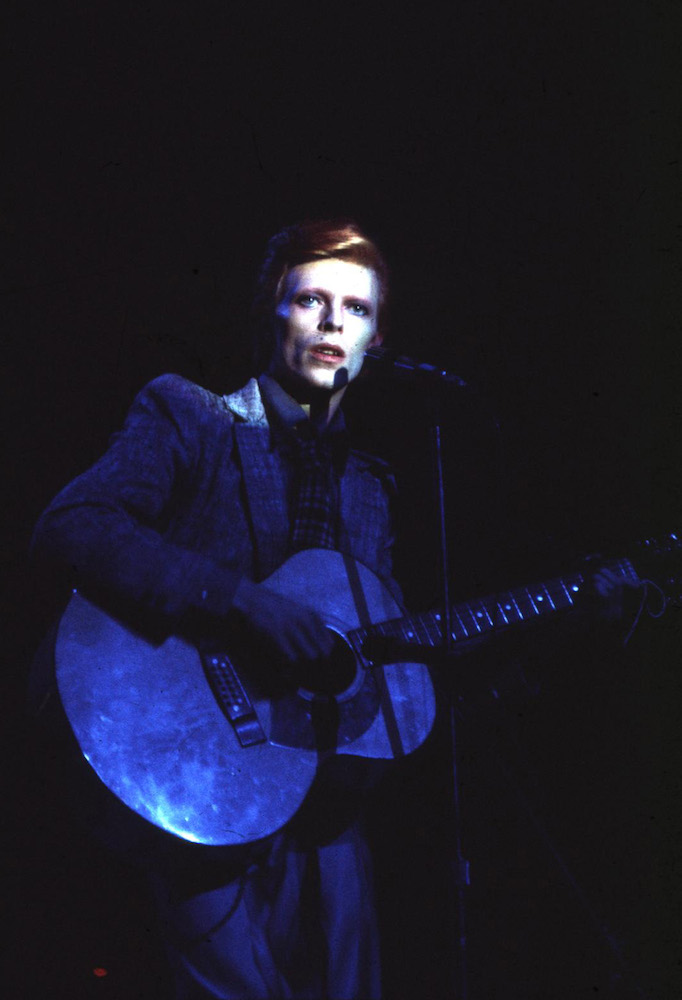 'In his last few English concerts, Bowie painted tiny lightning streaks on his cheek and upper leg. Once in awhile he uses pearlized gloss on his lips in a tan/pink that comes across like a white-silver highlight,”