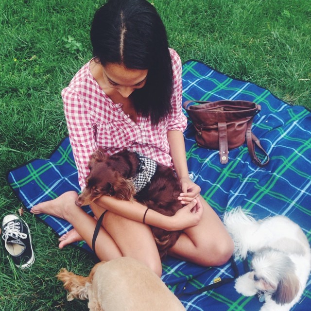 To relieve stress and stay calm, I often return to my parents’ advice to breathe more. Sometimes it’s as easy as that—taking a step back to breathe can be like hitting a reset button. And if that doesn’t work, drink a glass of wine. Or hang out with a dog—is there anything more instantly mood-lifting? I don’t think so.”