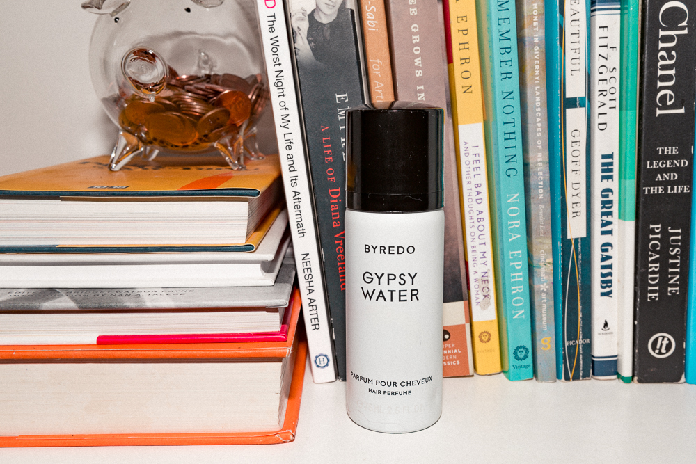 Last year, I traveled more than usual, so I’ve really improved my travelling beauty routine. The biggest thing I learned is to bring masks—they actually make a difference. I don’t mask on the plane, though I do moisturize a lot, pretty much starting as soon as I turn off that air vent that blows down on you from above. But then as soon as I get to the hotel, I’ll use the Sisley Express Flower Gel Mask because it only takes five minutes and you can let it sink into your skin, similarly to the Moon Mask—just wipe off any excess. I also realized that my eyes get puffy when I travel, so I bring a 100% Pure Bright Eyes Eye Mask. They have caffeine, which helps bring down the puffiness. And I’ll bring a sample fragrance to test because then I feel like I have a way to remember my trip! These mini bottles of Byredo cologne have been on a couple trips. I guess the only thing better than going back to the Bahamas is being able to remember it with a little Mister Marvelous.”