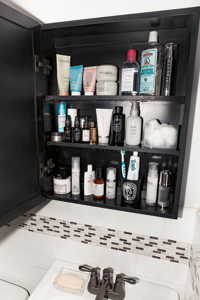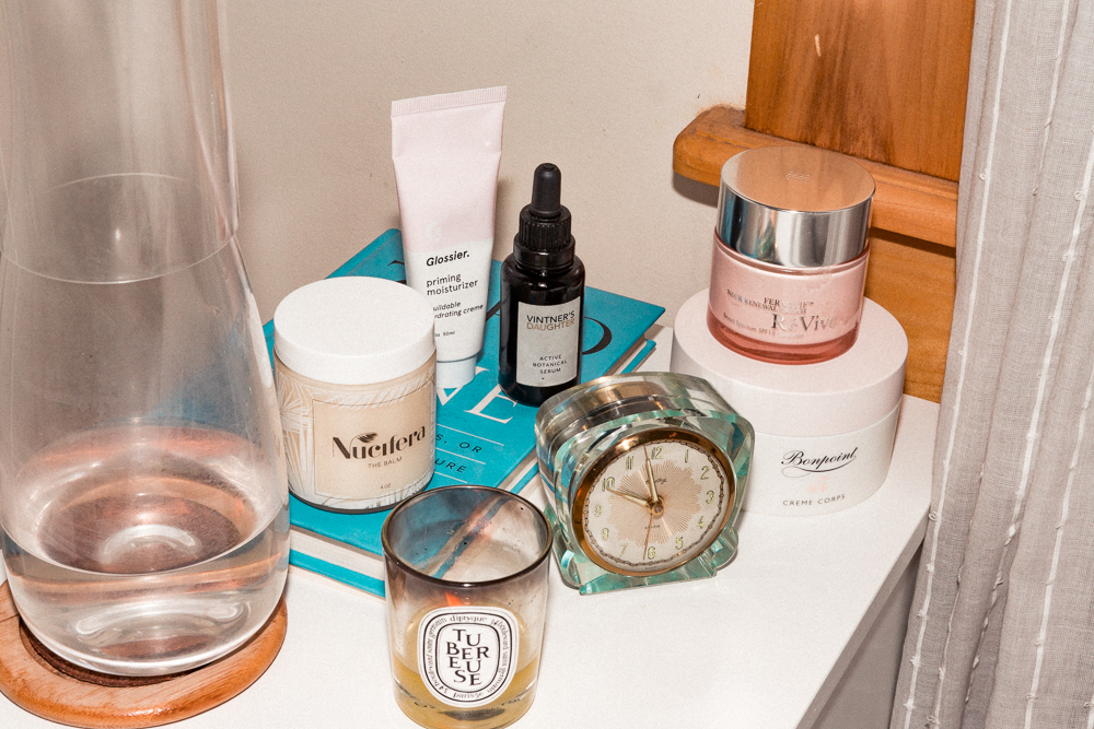 I also have some prescription benzoyl peroxide, but when I use that I really need something hydrating with it. I like Sisley’s All Day All Year—I use it all day, all year! It’s something I look forward to putting on in the morning—it smells as good as you’d want an expensive cream to smell, and it leaves your skin plumped up but primed for whatever you want to use next. My favorite sunscreen is Kiehl’s Super Fluid. At night, I like to layer serums. Recently I’ve been using Pai Copaiba & Zinc Perfect Balance Serum because my skin really likes zinc. My skin also likes Vitamin C, so I have a lot of products with that as an ingredient. When I need something heavier, I take Glossier Priming Moisturizer and mix in a couple drops of face oil. Vintner’s Daughter Active Botanical Serum is my favorite.