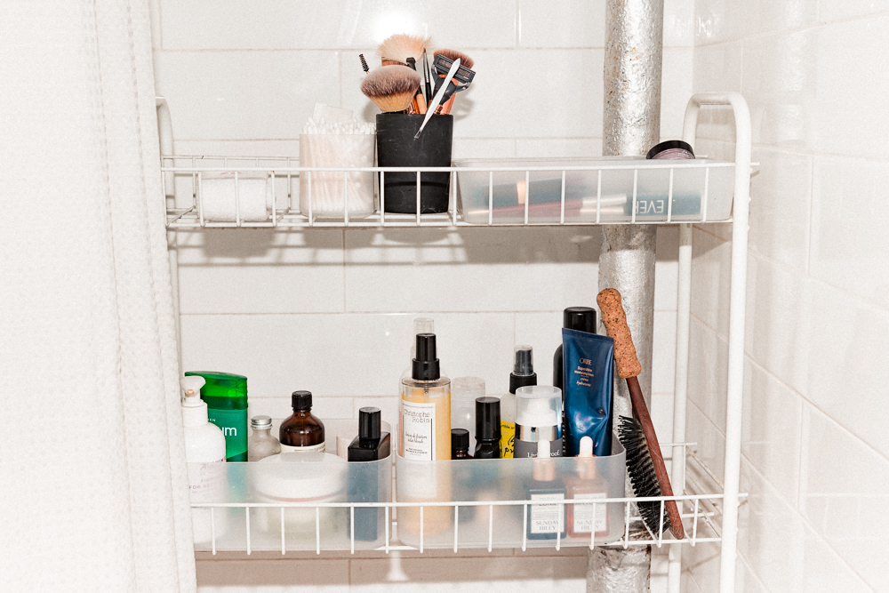 More Top Shelves from Team Glossier: Emily Ferber is an unapologetic disciple of the shower cap, Emily Weiss finally learns how to style her hair, and Annie Kreighbaum advises on the best photo-ready skincare.