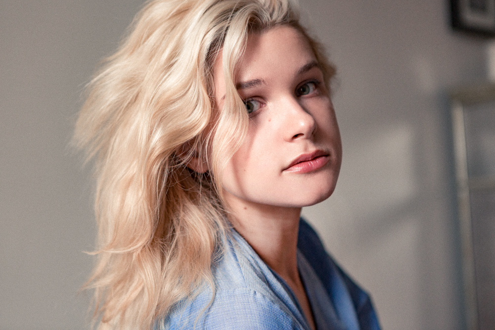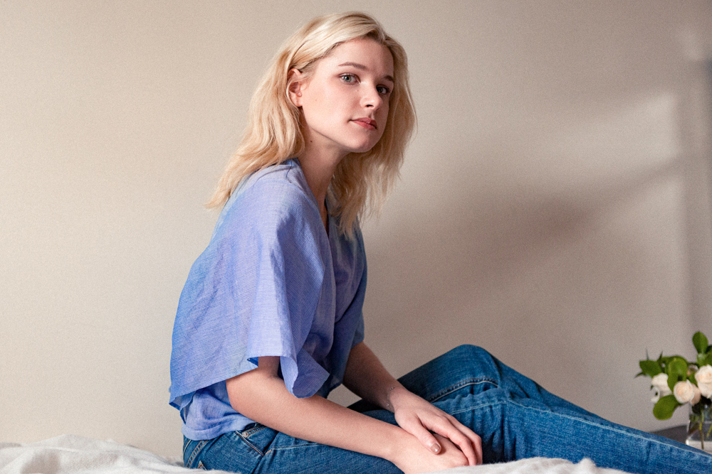 Claire Knebl photographed by Tom Newton at her home in Brooklyn on January 22, 2016. Claire is wearing a Rodebjer top and Rag & Bone jeans.